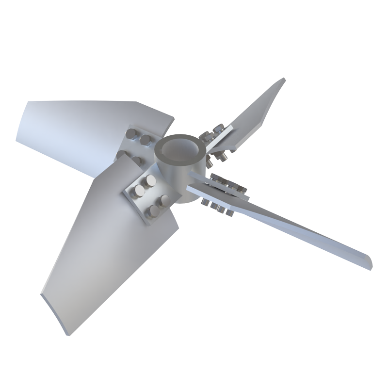 Четырехузколопастная пропеллерная перемешивающая лопасть ZSX представляет собой перемешивающую лопасть осевого типа. Коническая лопасть обеспечивает этому типу очень низкую силу сдвига и большие возможности турбулентной диффузии. Он аналогичен динамическим характеристикам KSX и особенно подходит для массообмена и твердой суспензии.