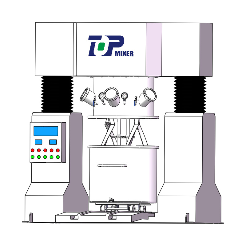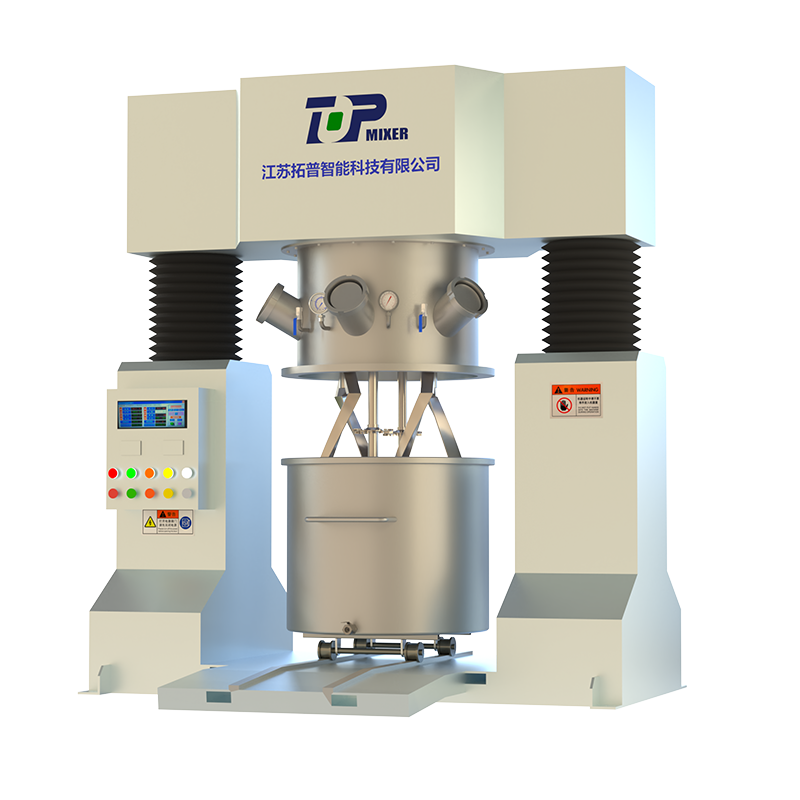Двухпланетный силовой смеситель имеет два набора перемешивающих лопастей и набор высокоскоростных дисперсионных валов, вращающихся вокруг оси цилиндра с высокой скоростью, так что материал подвергается сильному сдвигу и замешиванию, достигая цели быстрого смешивания; перемешивающие лопасти доступны в различных формах, таких как лопастной тип, скрученный тип, дынный тип, рамный тип и т. д. Наилучшую форму перемешивания можно выбрать для материалов с различным удельным весом вязкости и различными требованиями к производственному процессу.