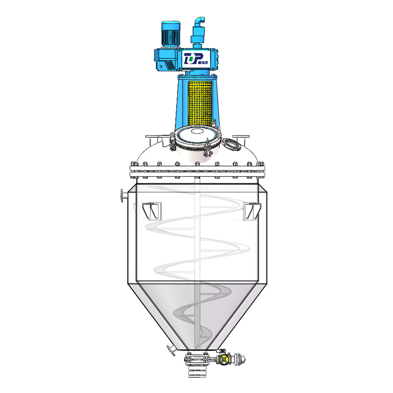 Преимущества продукта 1. Часто вытесняйте и перемешивайте сыпучий твердый материал. 2. Консольная конструкция вала, конец подшипника не соприкасается с материалом. 3. Зазор между перемешиваемой суспензией и стенкой контейнера очень мал, чтобы предотвратить склеивание материала. 4. Стандартизированная коробка привода перемешивания для обеспечения стабильной работы и низких затрат на техническое обслуживание. 5. Уплотнительные кольца специальной геометрической формы, качественная обработка поверхности оборудования и устранение слепых зон. 6. Контейнер можно нагревать или охлаждать с помощью внешней рубашки (опционально). 7. Дробилка используется для предотвращения агломерации материала.