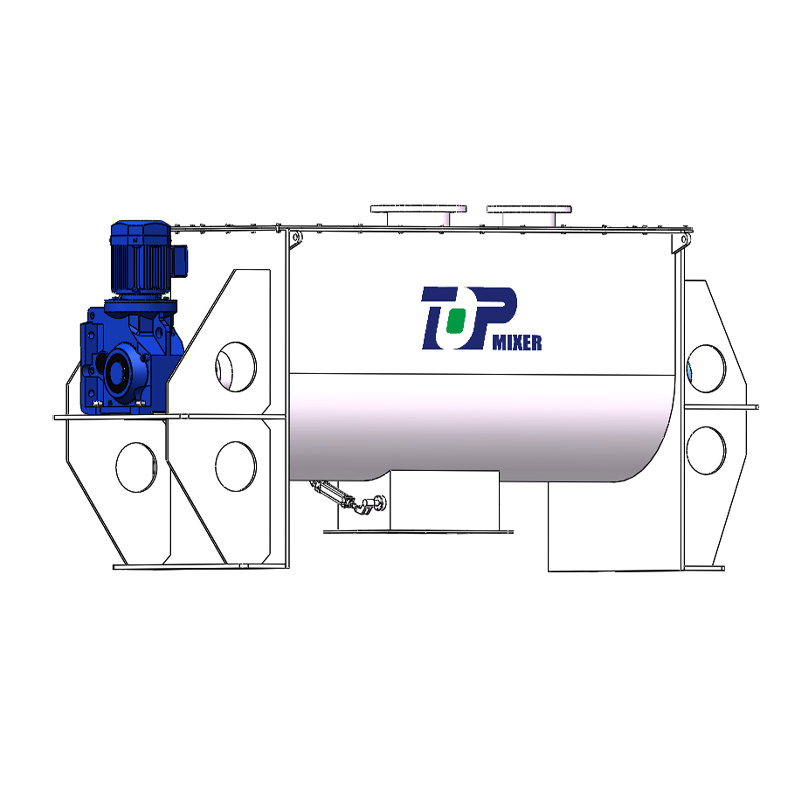 Он состоит из U-образного контейнера, винтовой перемешивающей лопасти и передаточного компонента: U-образная длинная цилиндрическая конструкция обеспечивает небольшое сопротивление перемещению смешанного материала (порошка, полужидкости) в цилиндре. Вращающиеся вперед и назад шнеки установлены на одной горизонтальной оси, что обеспечивает маломощную и эффективную среду смешивания. Лезвия в форме винтовой ленты обычно изготавливаются в два или три слоя. Внешняя спираль собирает материал с обеих сторон к центру, а внутренняя спираль транспортирует материал от центра к обеим сторонам, что может привести к образованию большего вихря во время потока. Ускорьте скорость смешивания и улучшите равномерность смешивания. Обычно его используют для смешивания вязких или когезионных частиц порошка и смешивания жидких и пастообразных материалов с частицами порошка. Из-за сложности очистки вязких материалов он подходит для длительного смешивания больших урожаев и редко меняющихся сортов.