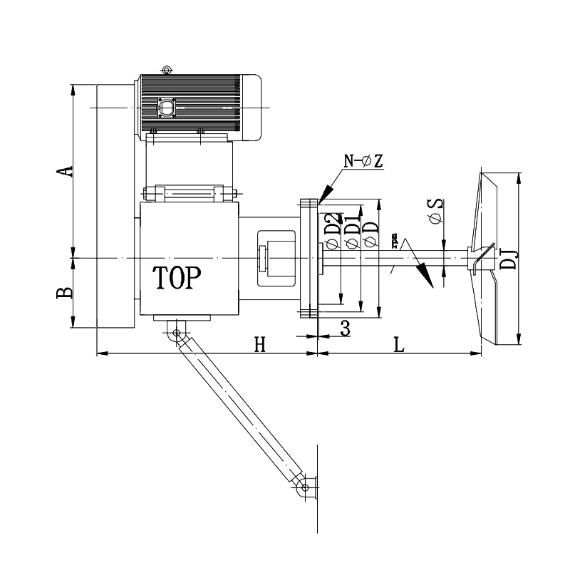 ● Размер фланца в таблице может быть заменен европейскими и американскими стандартами. Показанный способ установки представляет собой установочную трубчатую линейку на боковой стороне перемешивающей емкости, которую можно выбрать при боковой установке.