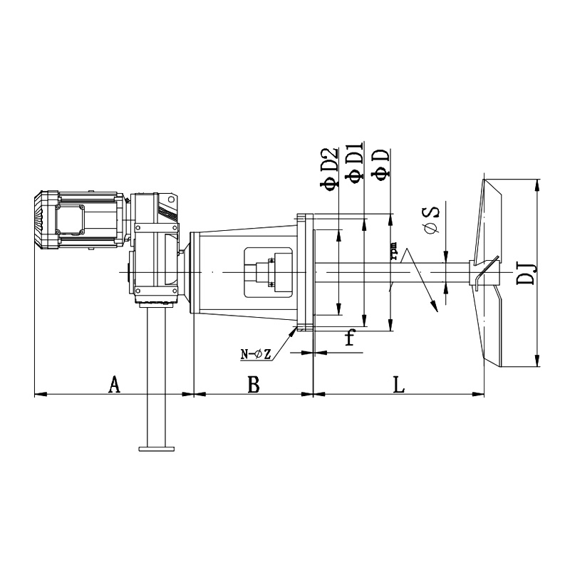 ● Показанный способ установки представляет собой размер отверстия установочной трубы на боковой стороне емкости для перемешивания, который можно выбрать во время боковой установки.